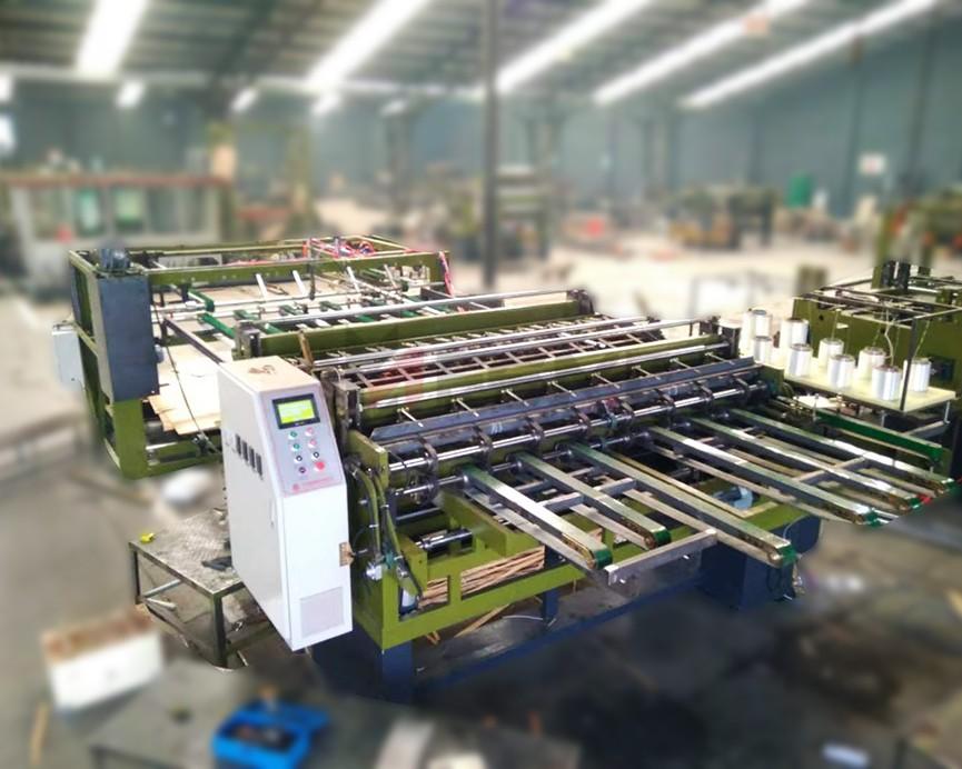 - Edge Gluing & Sizer Cutting: Hot melt glue and wire thread application ensures solid joint spots, preventing cracks after heating drying and further processing. The machine produces and cut sheets of standard sizes, such as 4'x8', 8x4’or 3'x6'.