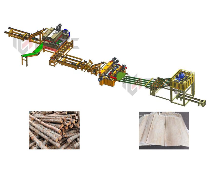 This veneer peeling production line according to production needs, can make 1 debarker with 1-2 units peelers,with full automatic peeling production or semi-auto veneer working production.